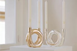 The collection is dedicated to decorating any ambiance with luxury candle holders and was uniquely designed with abstract curved shapes following the jewelry designer’s famous minimalist approach.
