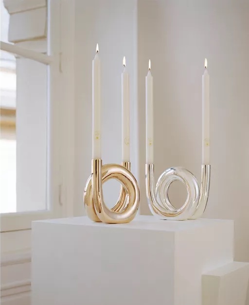 The collection is dedicated to decorating any ambiance with luxury candle holders and was uniquely designed with abstract curved shapes following the jewelry designer’s famous minimalist approach.
